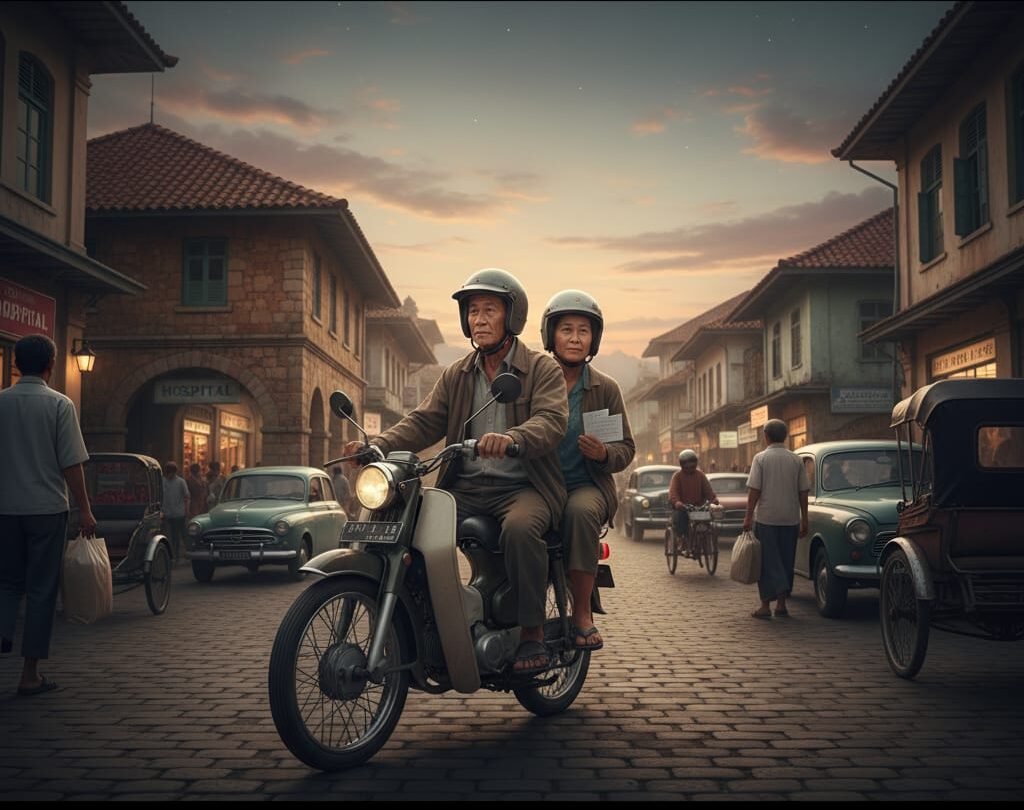 Dengan hati sedikit lebih lapang, mereka menembus pagi yang masih basah oleh embun. Motor tua mereka meraung pelan, seolah melafalkan doa-doa diam yang tersimpan di dada. Setibanya di Rumah Sakit Marini, mereka menapaki lantai dingin—dingin seperti hati yang menanti kabar pasti.