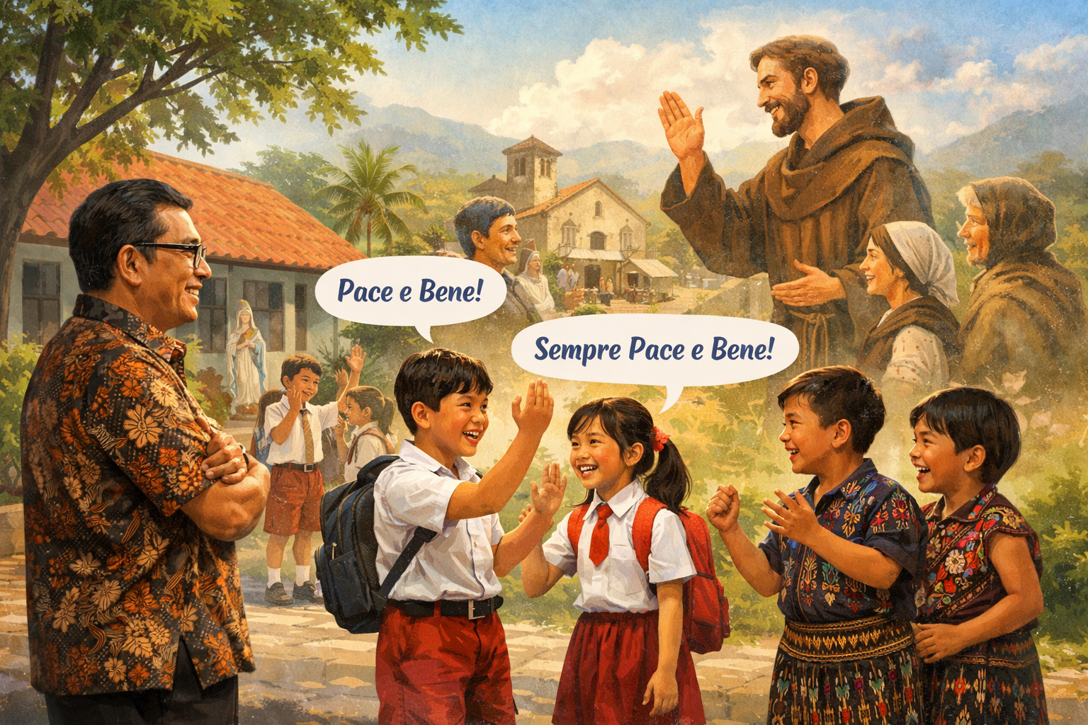 Keesokan harinya di sekolah, Pak Kodoong berdiri di depan murid-muridnya. Suaranya hangat ketika berkata, “Anak-anak, ketika kalian mengucapkan ‘Pace e Bene’ dan menjawab ‘Sempre Pace e Bene,’ kalian tidak hanya memberi salam. Kalian sedang memilih cara hidup.”